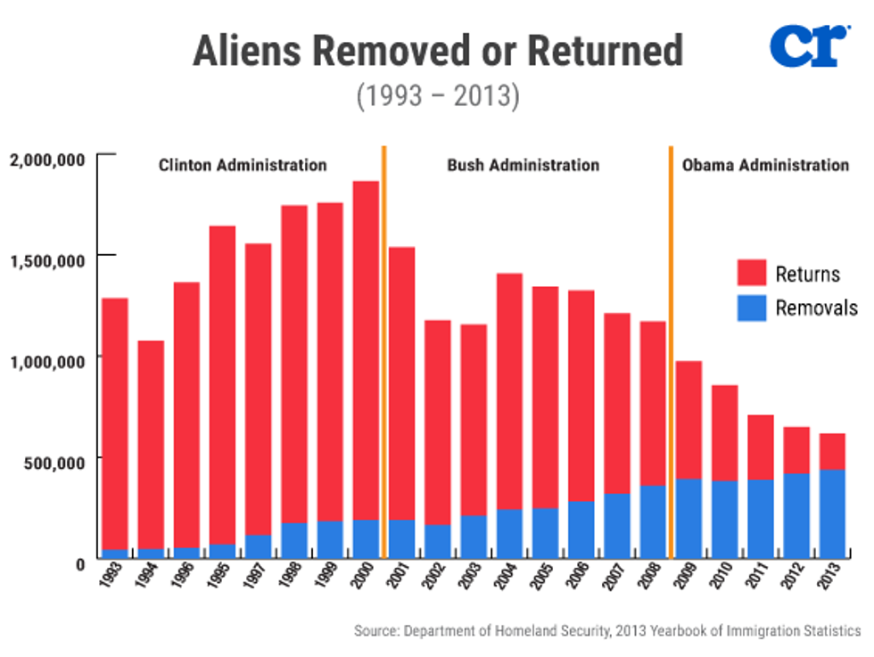 Secondly, Saldaña attempted to say that deportation is not a good thing and a that following current law “is not practical and that is, quite frankly, not very smart.” The problem with this assertion, as Cruz noted, is that Bill Clinton, with much fewer assets in the field, deported 12.3 million immigrants during his presidency, almost four times the number of the Obama Administration.