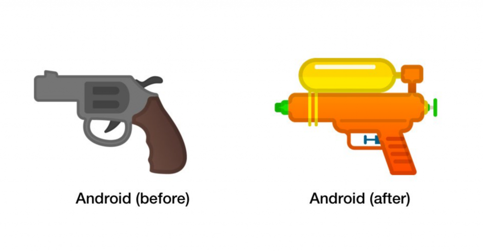 A new update for Android users will ditch the handgun emoji in favor of a toy water gun, Jeremy Burge reports for Emojipedia. Burge writes that the official reason from Google for changing the emoji is to "presumably minimize cross-platform confusion."
