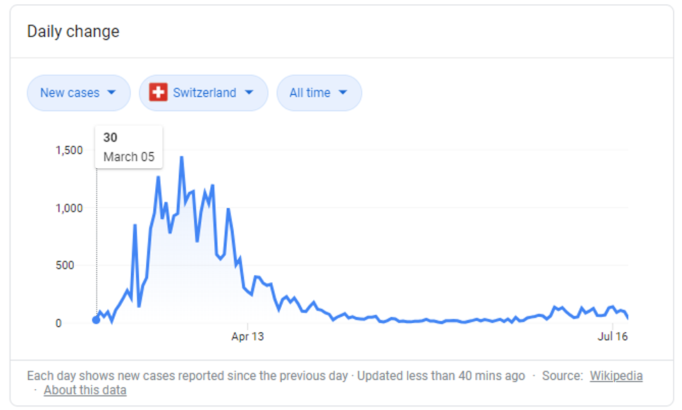 Take Switzerland, for example. It opened up much earlier than the U.S. and is now at a 36.57 index, almost half that of the U.S.