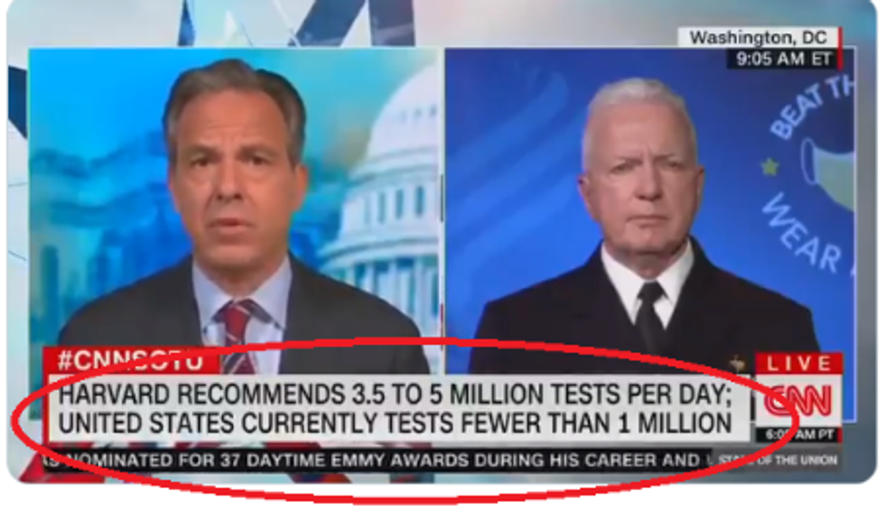 Fast-forward two more weeks to July 26, and CNN is running banners touting this new number of 3.5 million to 5 million per day. Again, Jake Tapper states during the interview that this has been the recommendation for “months.”
