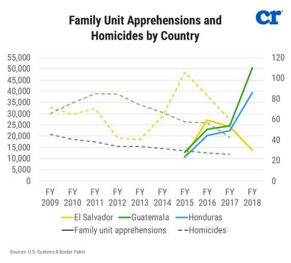 But it gets even more absurd. Migration from Mexico to the U.S. is actually down, even as violence skyrockets there. The number of family units crossing from Mexico is down almost 50 percent since FY 2015. So this has absolutely nothing to do with violence and everything to do with Central Americans coming for economic reasons and to “reunite” with illegal family members already here.