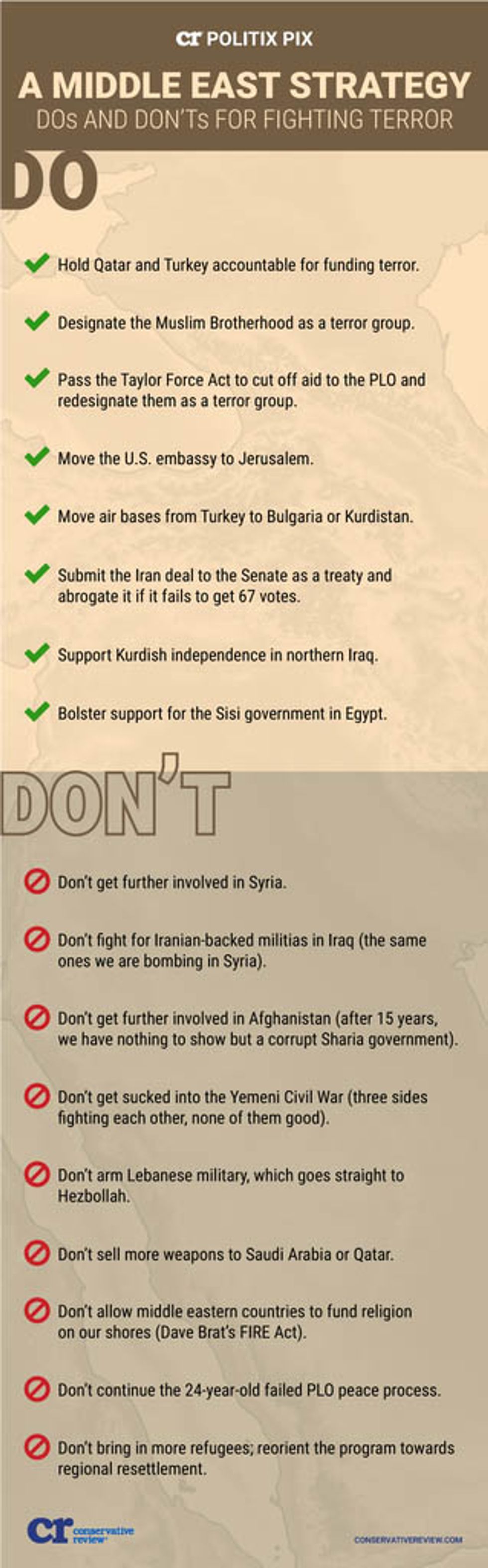 To that end, here is a simple list of do’s and don’ts the president should follow that will actually convert his slogans and rhetoric to real policy transformations in the Middle East: