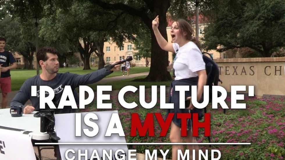 Returning to Texas Christian University, Crowder set up a booth with a sign that read "Rape Culture Is a Myth" and challenged students to change his mind through argument.