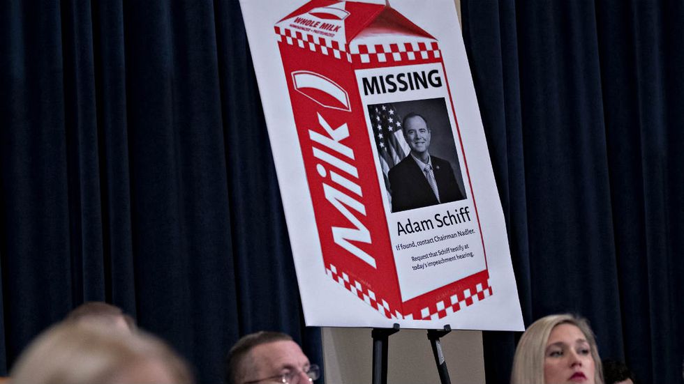 During the hearing, Republican members of the committee even put up a large picture of Schiff’s face on the side of a milk carton with the caption “missing” over it.