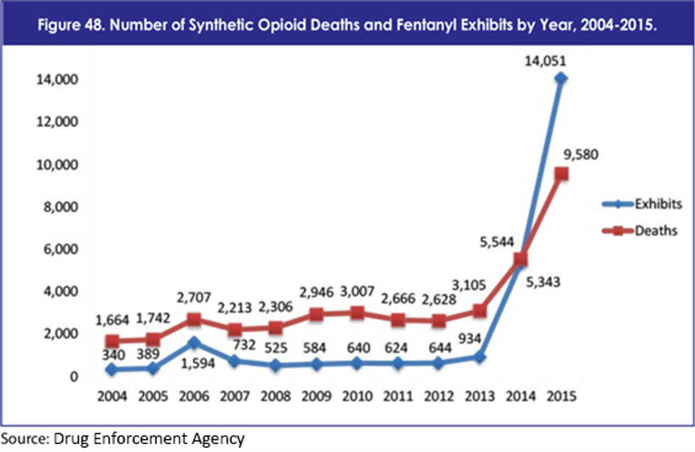 And the rest is indeed history. From 2013 to 2016, according to the Drug Enforcement Agency (DEA), the level of heroin production in Mexico tripled. And not surprisingly, right after 2013, is when the entire fentanyl phenomenon took off: