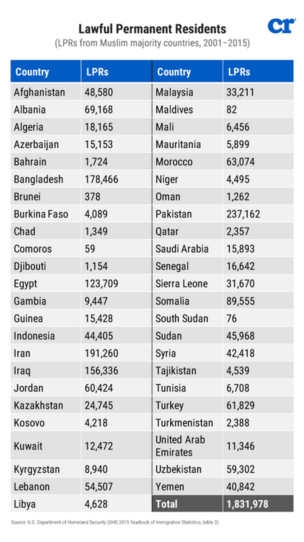 Last month, we posted a report showing that 1.83 million green cards were issued to nationals of predominantly Muslim countries from 2001-2015, which has made immigration from the Middle East the fastest-growing subset.
