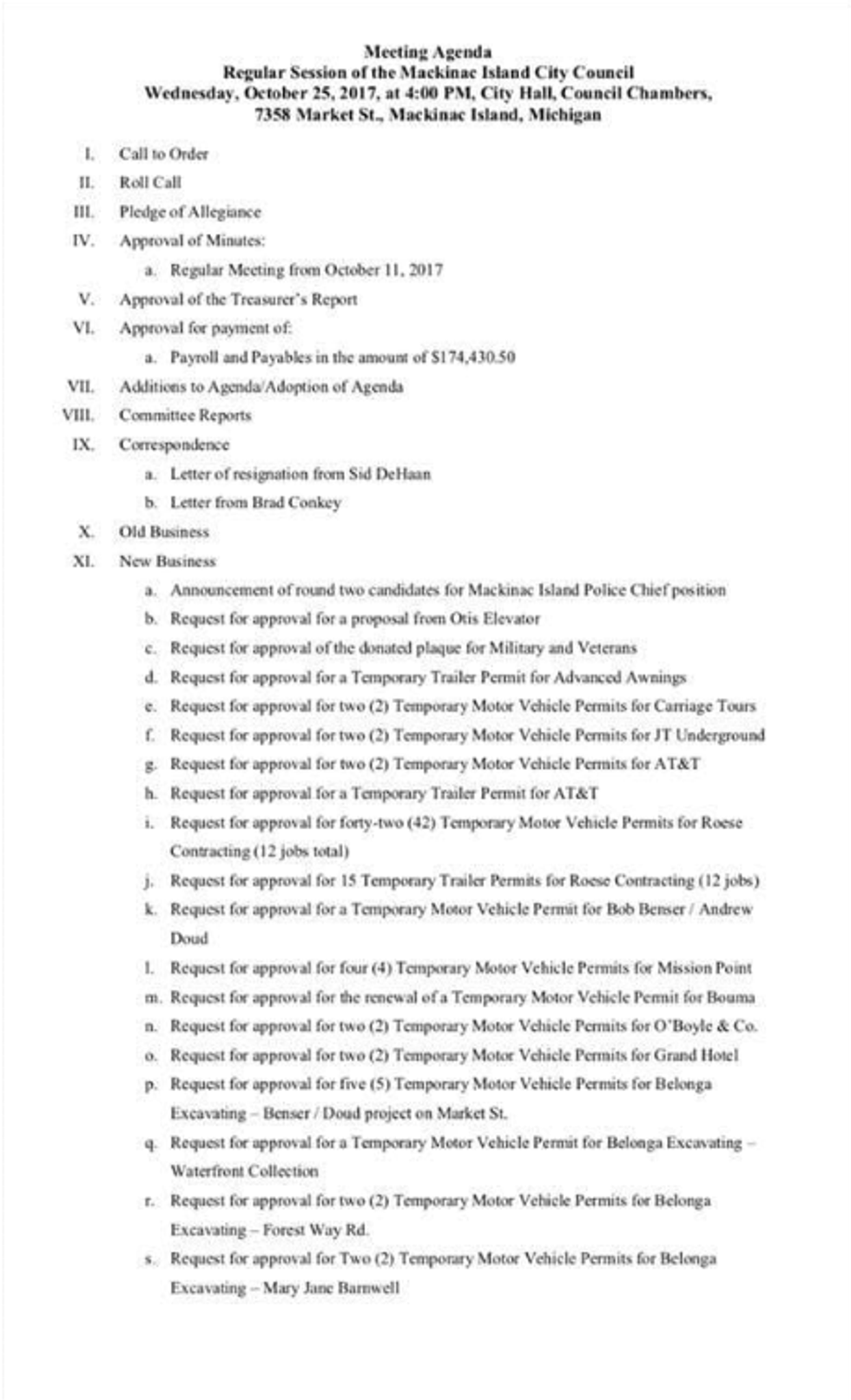 In fact, this is a screenshot of the Mackinac Island City Council approving around 80 vehicles in one month.