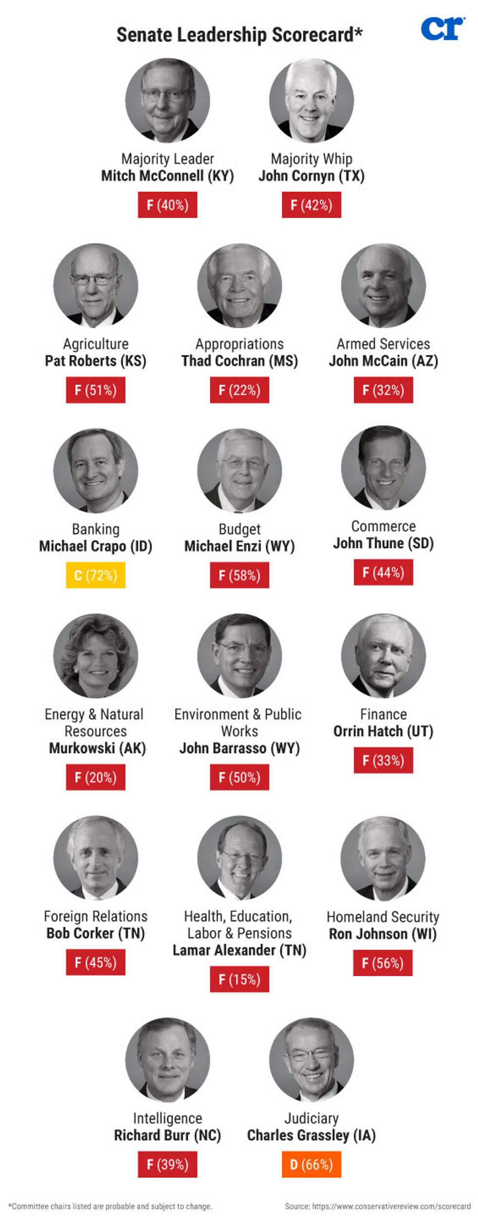 I already analyzed Orrin Hatch, Chuck Grassley, John McCain, and Thad Cochran before the election in my piece on the four fossils that are using the Senate as a retirement home. But take a look at some of the other scores here.