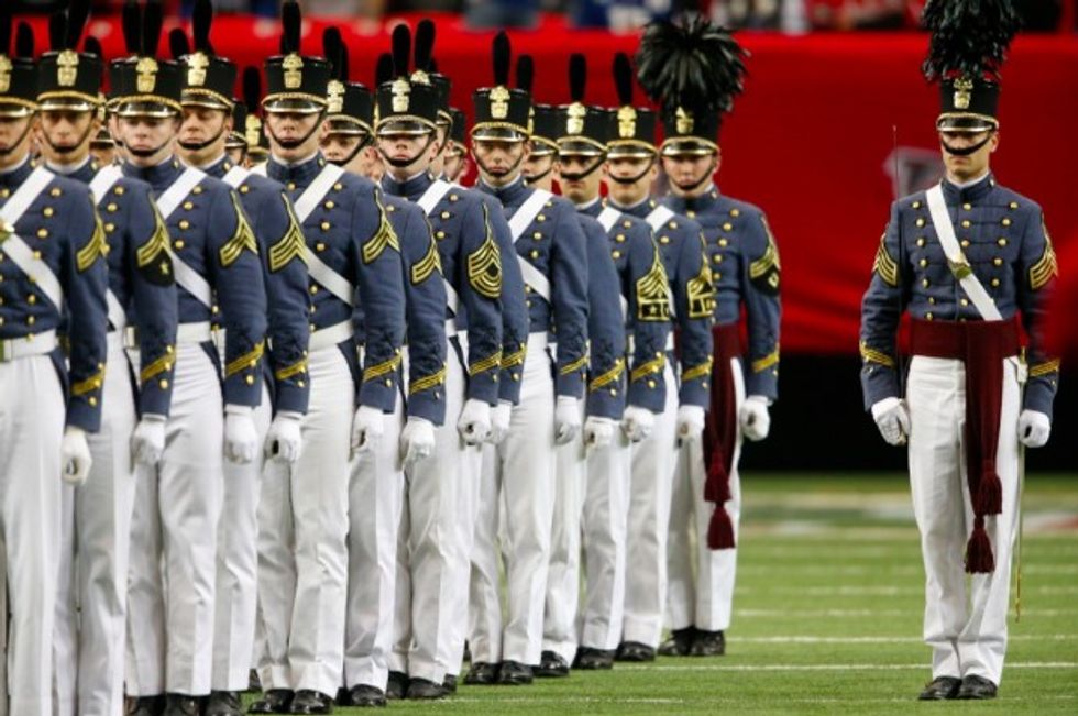 Members of the Citadel perform during the halftime of an NFL football game between the Atlanta Falcons and the Indianapolis Colts, Sunday, Nov. 22, 2015, in Atlanta. (AP Photo/John Bazemore)