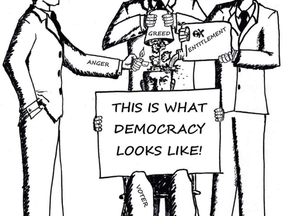 Democracy is the passionate demands of a population motivated by anger, greed, and entitlement, but very rarely common sense. This is what democracy looks like. If you don’t believe me then you haven’t been paying much attention to American politics.