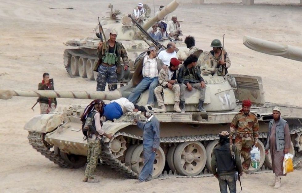 General People's Committee deploy at mechanized unit in Aden, Yemen on March 25, 2015. (Photo by Wael Shaif Thabet/Anadolu Agency/Getty Images)