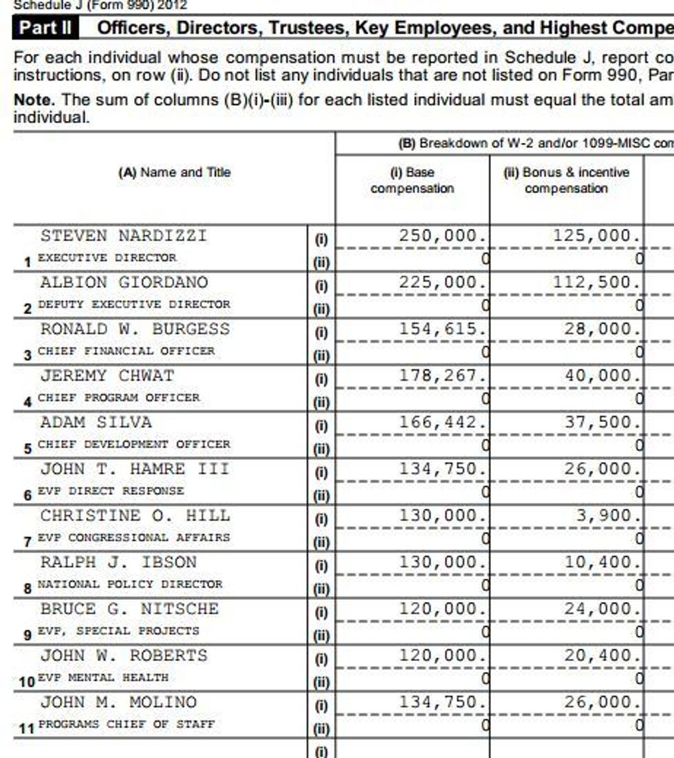 Additionally, the CEO's salary is technically $250,000, with a $125,000 bonus if the charity performs well, as noted on the 2013 Form 990.