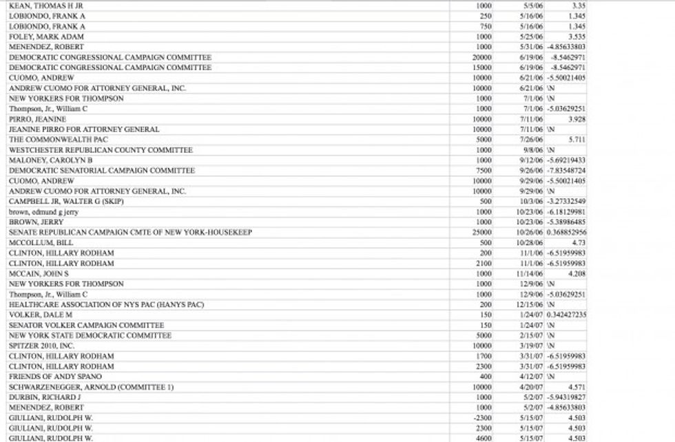 Closer to home, he's also been a team player to Republican causes such as the New York State Senate Republican Campaign Committee ($10,000), Friends of Pataki ($10,000), and to GOP darlings such as Rudy Giuliani.
