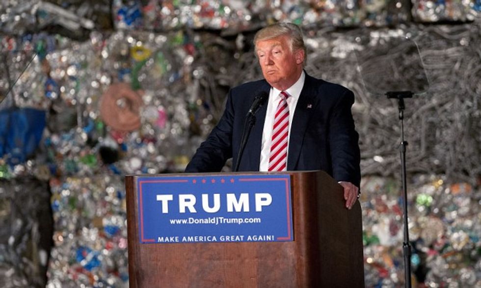 Presumptive Republican candidate for president Donald Trump speaks to guests during a policy speech during a campaign stop at Alumisource on June 28, 2016 in Monessen, Pennsylvania. (Jeff Swensen/Getty Images)