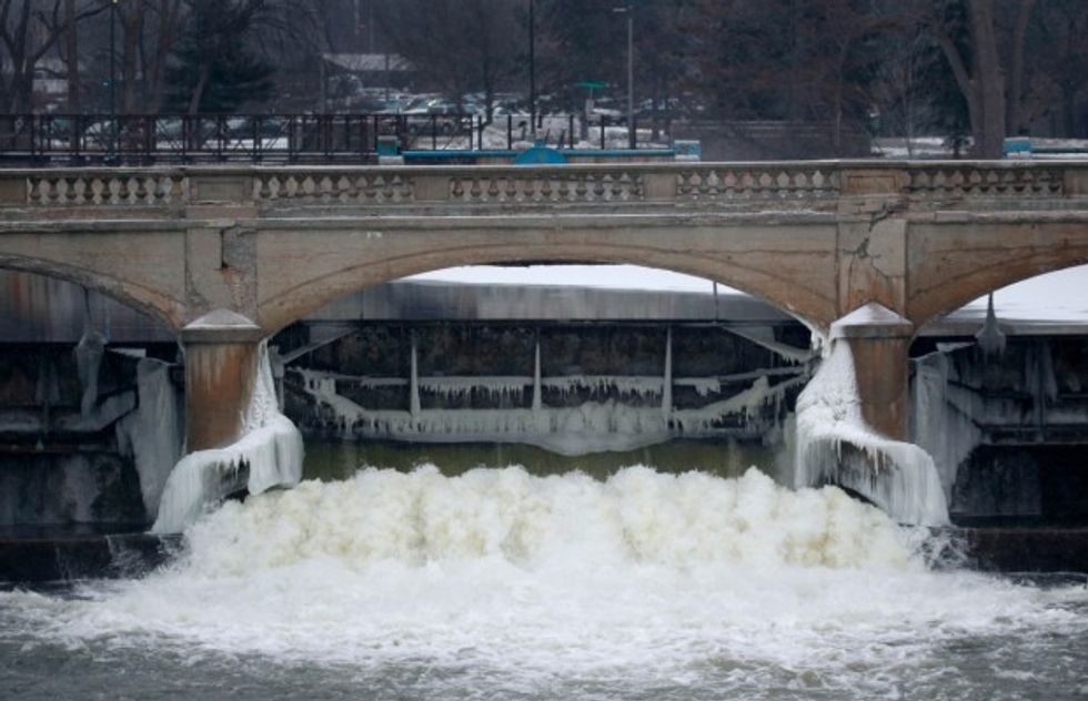Water from the Flint River flows through the Hamilton Dam near downtown Flint, Mich., on Jan. 21, 2016. (AP Photo/Paul Sancya, File)