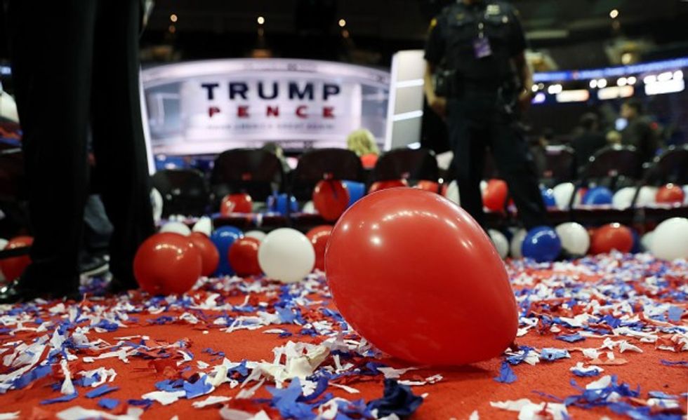 Balloons and confetti are seen at the end of the fourth day of the Republican National Convention on July 21, 2016 at the Quicken Loans Arena in Cleveland, Ohio. (John Moore/Getty Images)