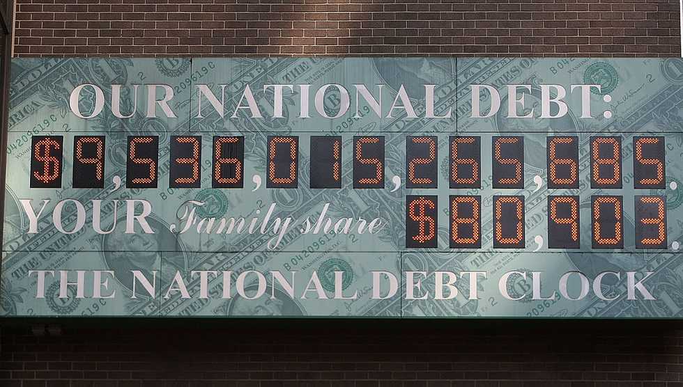 The unofficial 'National Debt Clock' advertises the debt of the United States in midtown September 18, 2008 in New York City. Morgan Stanley and Wachovia Corp. are reportedly discussing a possible merger following the collapse of Lehman Brothers Holdings Inc. (Photo by Mario Tama/Getty Images)
