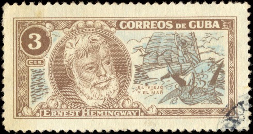 A stamp printed in Cuba shows image of the Ernest Miller Hemingway (July 21, 1899 - July 2, 1961) was an American author and journalist, circa 1963. Photo Credit: Shutterstock