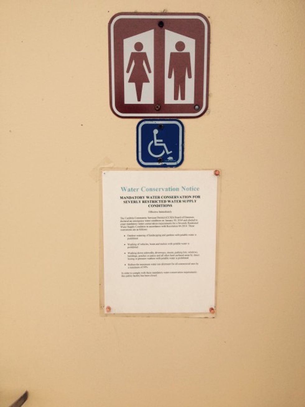 At a rest stop near the town of Cambria - where the average home price is $640,00 - signs appear on rest area doors explaining the restrooms are closed until further notice due to the water shortage. Portable potties sit out front, attracting flies but not many visitors.