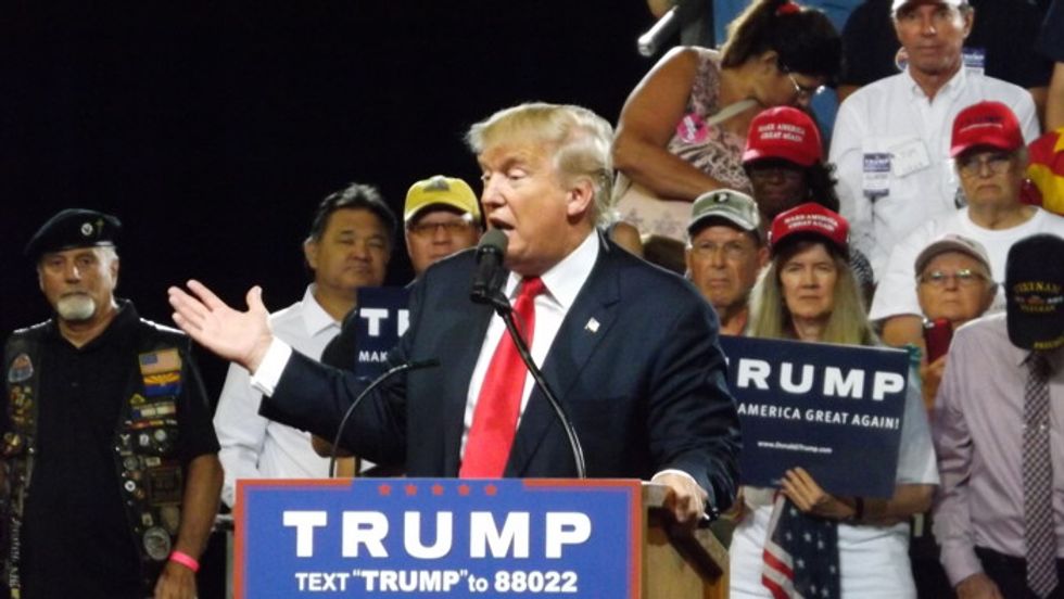 During his remarks Trump rejected the U.S. Department of Labor's unemployment statistics as "phony numbers," also stating that "it's a false system folks. We have tremendous massive unemployment. It is about jobs; it's like, that's like the great medicine that makes us better."