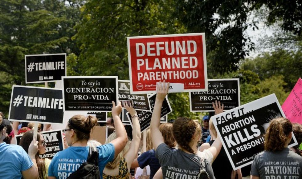 Activists hold a rally opposing federal funding for Planned Parenthood in front of the U.S. Capitol on July 28, 2015 in Washington, D.C. The measure to defund Planned Parenthood in the Senate ultimately failed though. (Olivier Douliery/Getty Images)