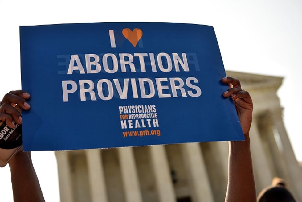 Abortion rights activists hold placards outside of the US Supreme Court ahead of an expected ruling on abortion clinic restrictions on June 27, 2016 in Washington, DC. / (MANDEL NGAN/AFP/Getty Images)