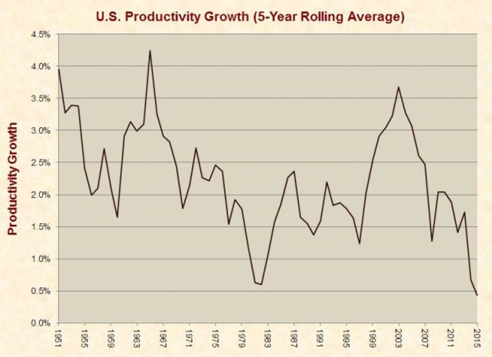 U.S. Productivity Growth 5-Year Rolling Average (Just Facts)