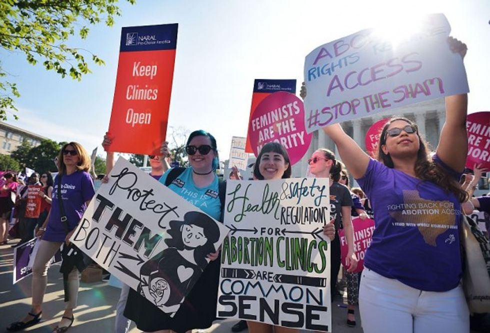 Protesters hold placards outside of the US Supreme Court on June 27, 2016 in Washington, DC. (MANDEL NGAN/AFP/Getty Images)