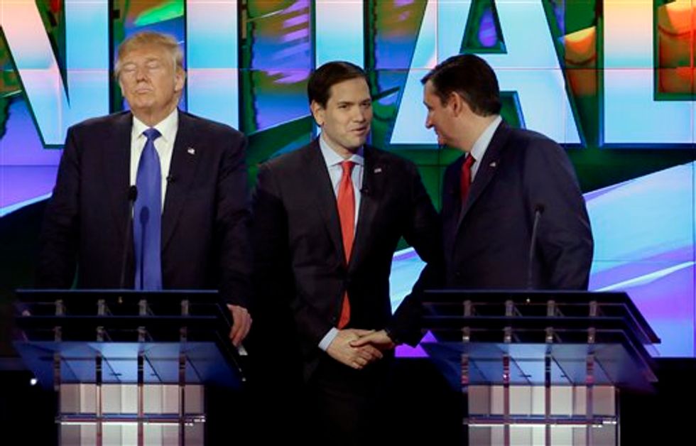 Reuters rolling national poll shows Trump up by 24 over Cruz and 30 over Rubio nationwide. This is embarrassing. And just like Jeb Bush (aka “Jebra”), Cruz and Rubio have gone insane with anger, envy and jealousy. Their handlers obviously ordered them to go nuclear because the end is near. So Cruz and Rubio hurled obscene charges at Trump all weekend.