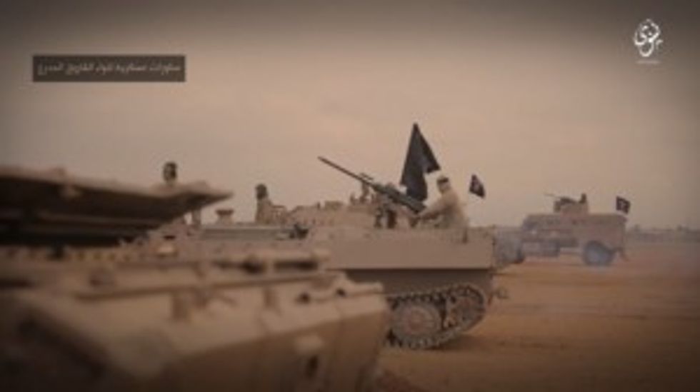 The video showed ample armored vehicles in the jihadist group's arsenal. (Image source: Islamic State video)