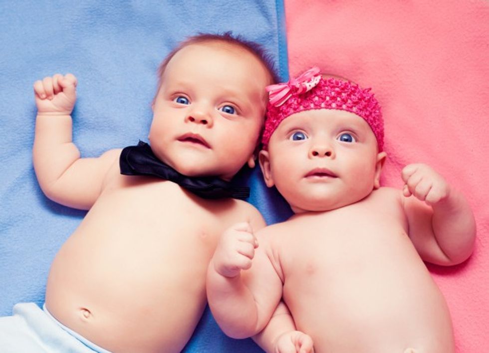 My own parental experience has probably been more typical. I have a 2-year-old son and daughter. They're twins. Raised, obviously, at the same time, in the same house, in the same way, and given access to the same toys. Yet, generally, my son will run to the toy chest and grab the truck or the dinosaur, and my daughter will gingerly pick up her baby doll and walk around the house cradling it in her arms, pretending to feed it a bottle or brush its hair. If my son picks up a doll, he'll usually throw it at his sister's head within 30 seconds (something we keep in mind whenever there's a real baby in the vicinity).