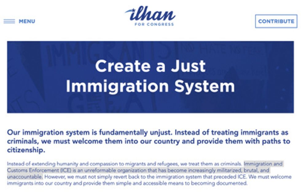 States Omar's site: "Immigration and Customs Enforcement (ICE) is an unreformable organization that has become increasingly militarized, brutal, and unaccountable."