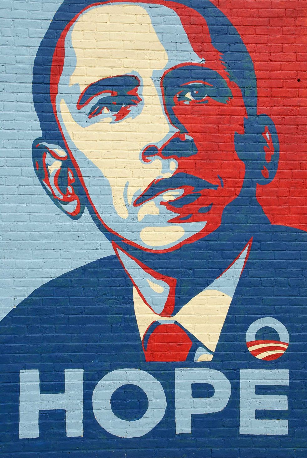 It genuinely wasn’t until Obama’s 2008 campaign that the political campaign itself became a canvas for design messaging and visual innovation. Shepard Fairey, the street artist behind the OBEY campaign, made the famous HOPE poster that changed the game. But it wasn’t just that. The Obama campaign tweaked the typical, boring red, white, and blue for a brighter sky blue and a more palatable red, with fonts now featuring more rounded, childlike edges. For the logo, a big friendly blue “O” was bisected by the stripes of a flat-laid flag, evoking fields of wheat in a cartoonish reference to America's pastoral roots. The whole thing felt very Disney.