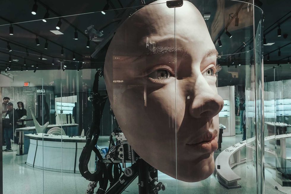 Sure, technology had muscled in on the clammy, sweaty, fleshy terrain of the bargain seeker and the lounge lizard. Yes, the storied shops at Caesar’s were dominated by three gigantic fembot heads, installed in the vast front display space at Gentle Monster, the South Korean luxury sunglasses shop. But for now, at least, the heaviest meatspace presence of proper clankers was a battery of goofy janitor bots, milling around still more aimlessly than the human patrons—enough to cause more than one near-collision (myself included). There was still time for the human race to take its bearings once again, not only to repent but also to rebalance, reinvent, and rebound. Caught up in it all, I felt my cynical critique of the Strip’s medieval casino morph enchantingly into a crash-course brand identity salvage job plan—Shrekscalibur . . .