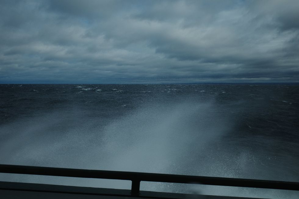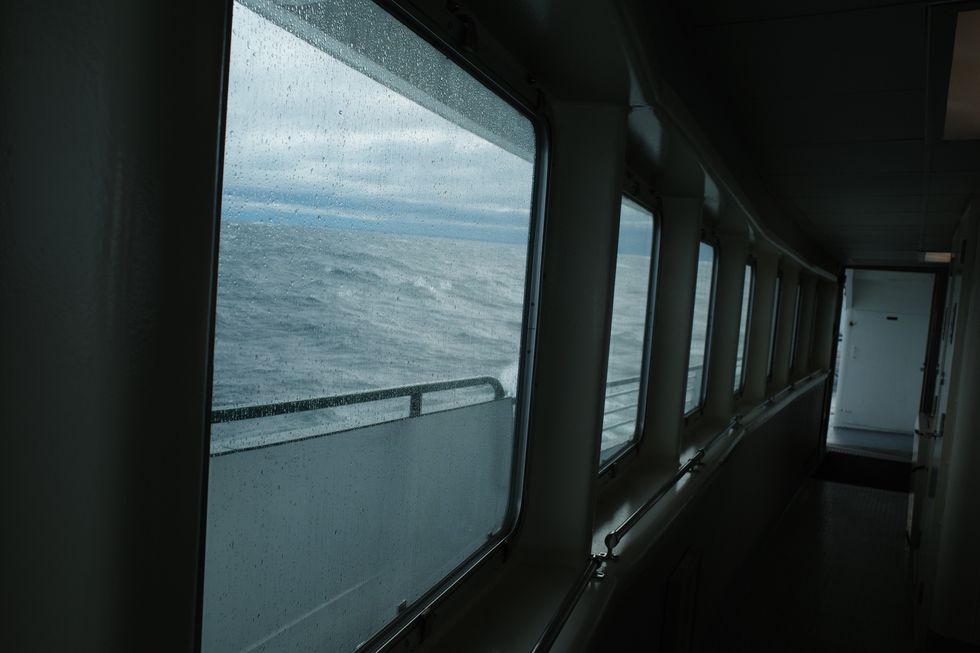 For 90 minutes, the little ferry battled its way through the rough water. The engine bellowed under our seats. Mechanical growls interrupted eerie breaks of silence as the bow came up, only to smack down like a hammer on an anvil a few seconds later. Waves crashed over the white railings—water pelting the windows. At points, we were so lopsided, the terrifying, steel water subsumed the sky through the windows on the starboard side.