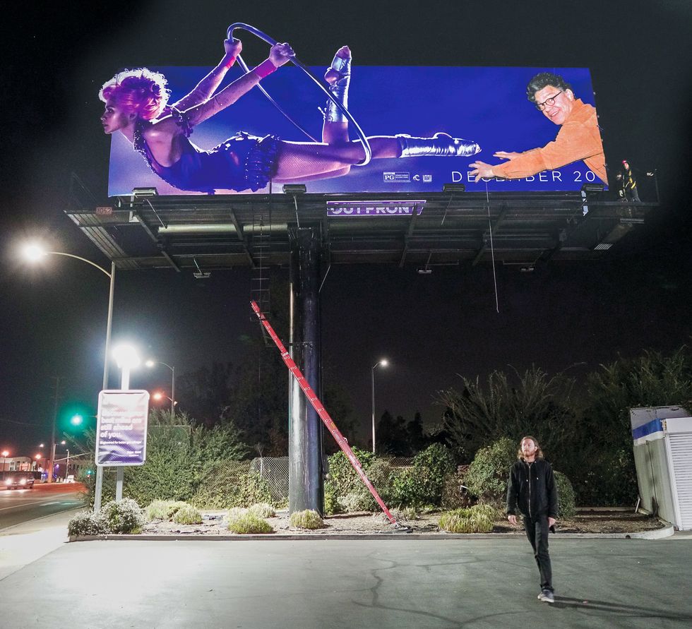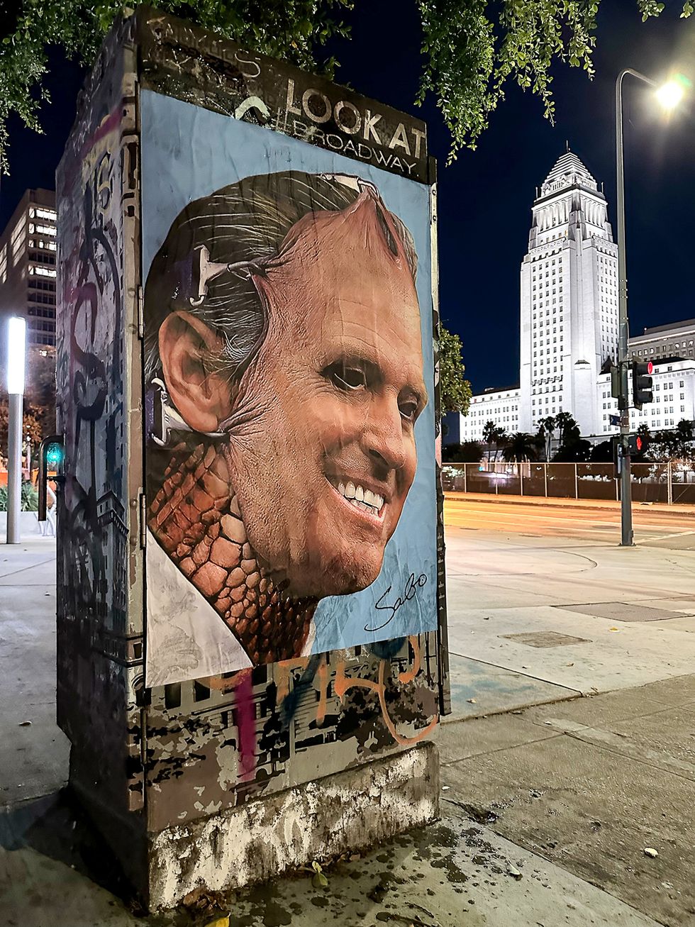 Of the ones I’ve done? Maxine Waters as Michael Myers from Halloween. The Pedowood takeover. The Greatest Showman / Al Franken billboard takeover, Gavin Newsom as a reptile, and Trump’s Sotheby’s real-estate ads. I don’t like many other street artists and I’m too drunk and pressed for time to even think of other people’s art. Not that it would matter because most of them suck. They do wallpaper.