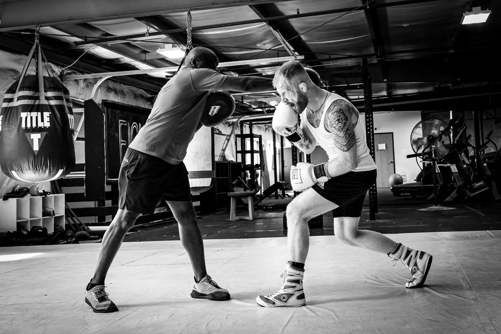 The camp became a transcendent experience as he gutted his way through deeply intense conditioning, bloody sparring, hypnotherapy, and long, hot, dusty, contemplative hikes. Carrying a series of large rocks up a hill, he took a literal and metaphorical burden of the past and laid it all down at the summit. Kevin spent many hours every few days driving from his home gym in Springfield, Oregon, to American Top Team in Portland to spar and train with top-level talent in the Pacific Northwest.