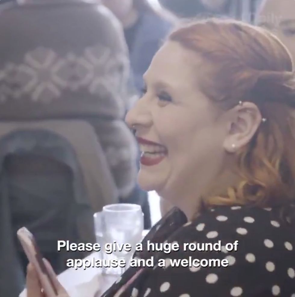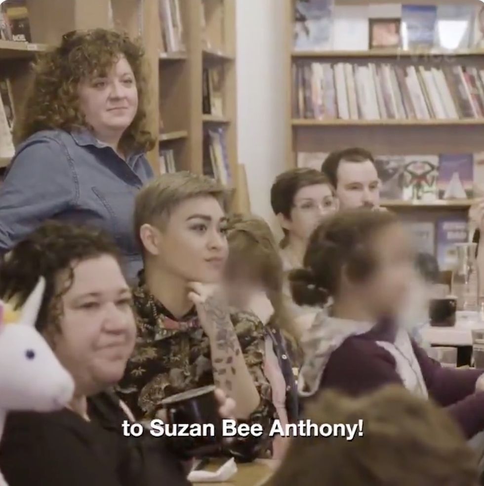 The crowd shouts for the likes of "Laddy Gaga" and "Suzan Bee Anthony" as the kids perform for their pleasure.