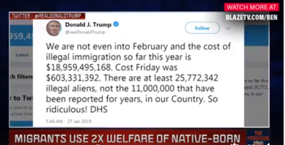 In this clip, BlazeTV host Ben Ferguson explained shocking new statistics that show migrant households in this country use nearly twice as much welfare as native-born American households, and he highlighted the $70,000 price tag that falls on the shoulders of every American taxpayer.