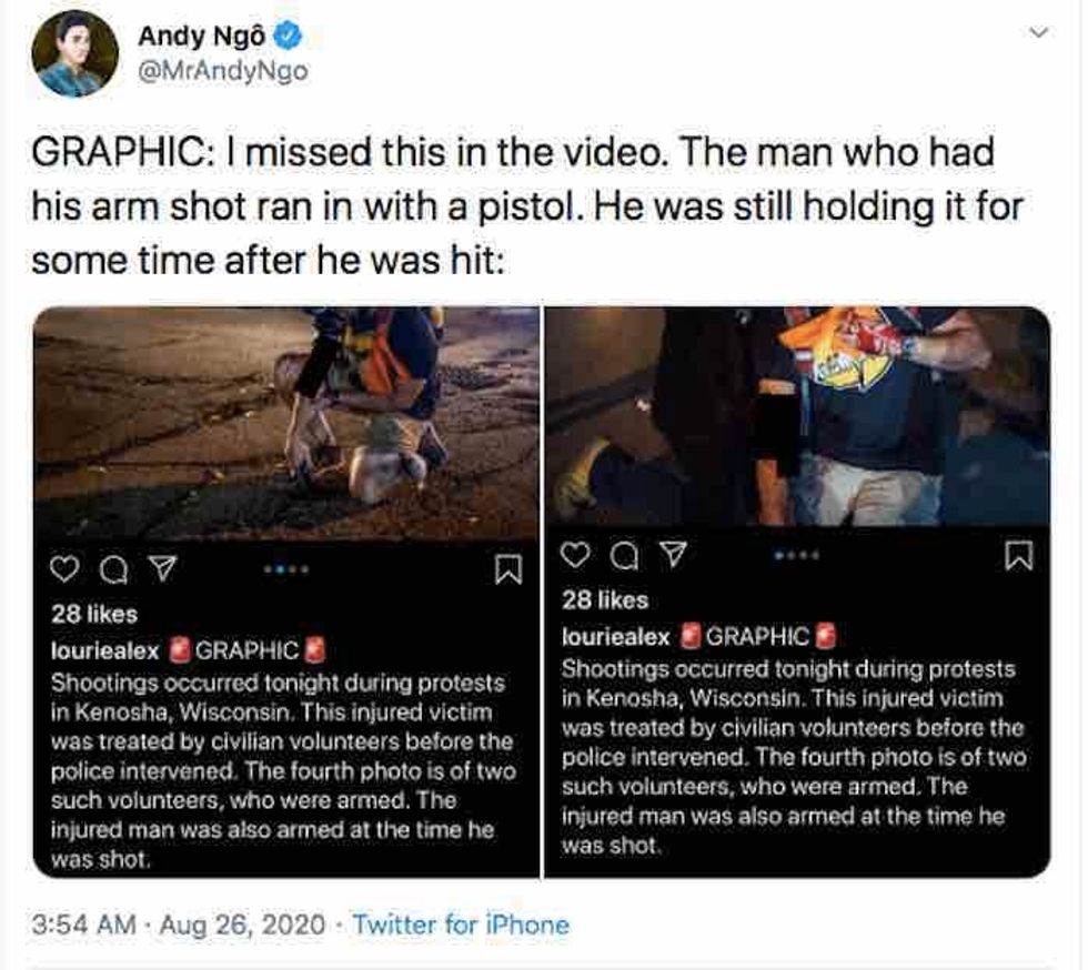 The victim who was shot in the arm ran away from the shooter, bleeding heavily and screaming repeatedly that he needed a medic, the Milwaukee Journal Sentinel reported, adding that more gunshots followed. A bystander who was livestreaming helped the victim with tying a tourniquet around his arm, the paper added.