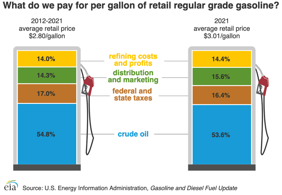 State and federal gas taxes make up about 16.4% of the average retail price for a gallon of gasoline, according to the U.S. Energy Information Administration.