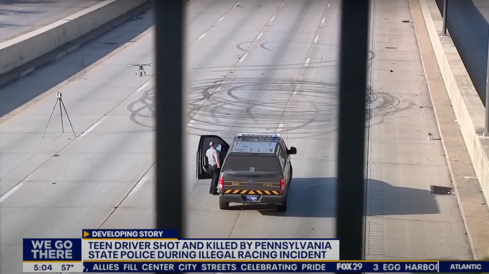 An 18-year-old male was shot dead by Pennsylvania State Police officers who said he hit two troopers with his car amid illegal street racing on Interstate 95 in Philadelphia early Sunday morning.