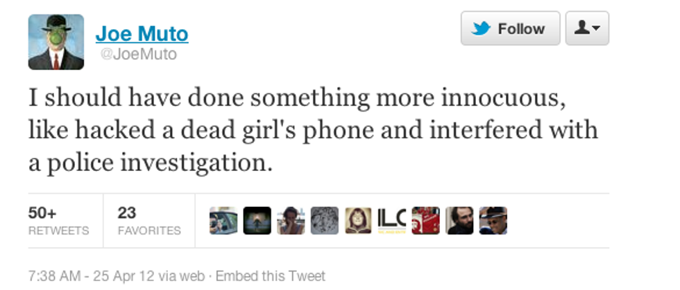 "I should have done something more innocuous, like hacked a dead girl's phone and interfered with a police investigation."