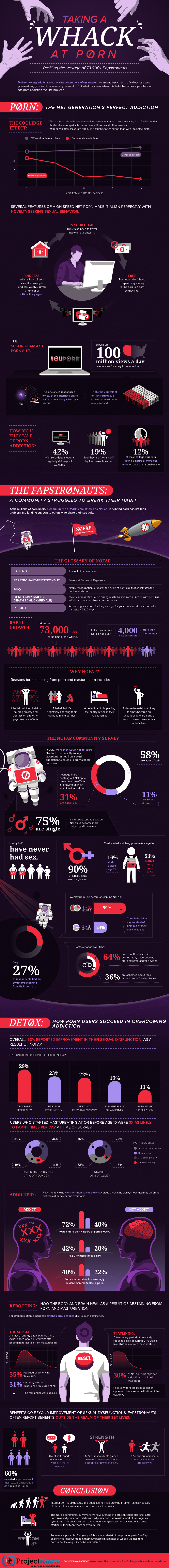In analyzing a group of Reddit users known as NoFap -- a collective of individuals who avoid masturbation and, as a result, are attempting to no longer look at Internet pornography -- Project Know explored a segment of the group's demographics, the consequences for their actions and the benefits they experienced by giving up porn.