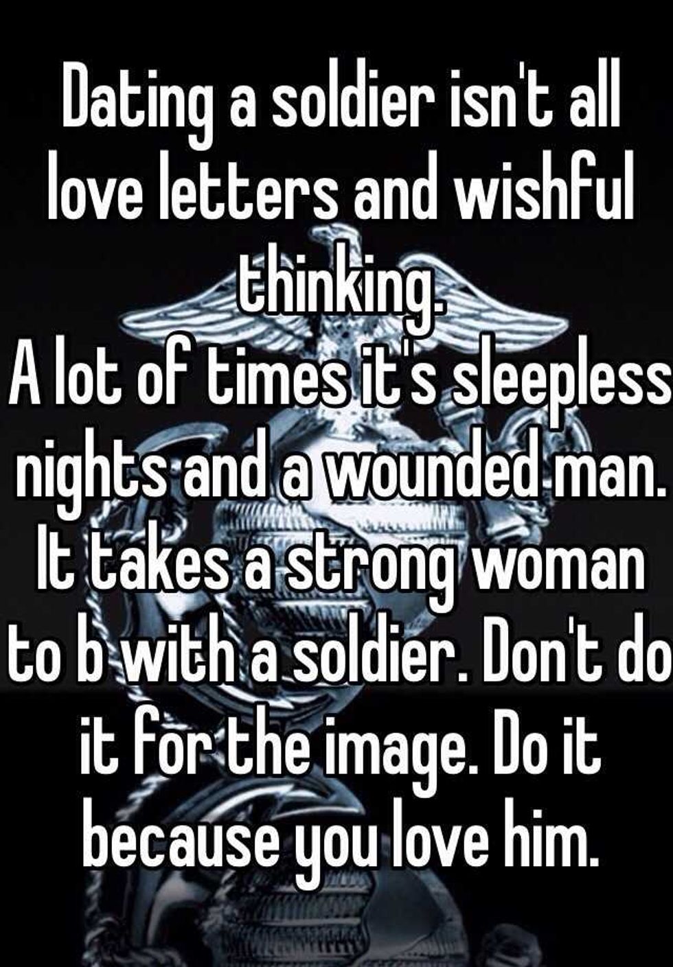 "Dating a soldier isn't all love letters and wishful thinking."