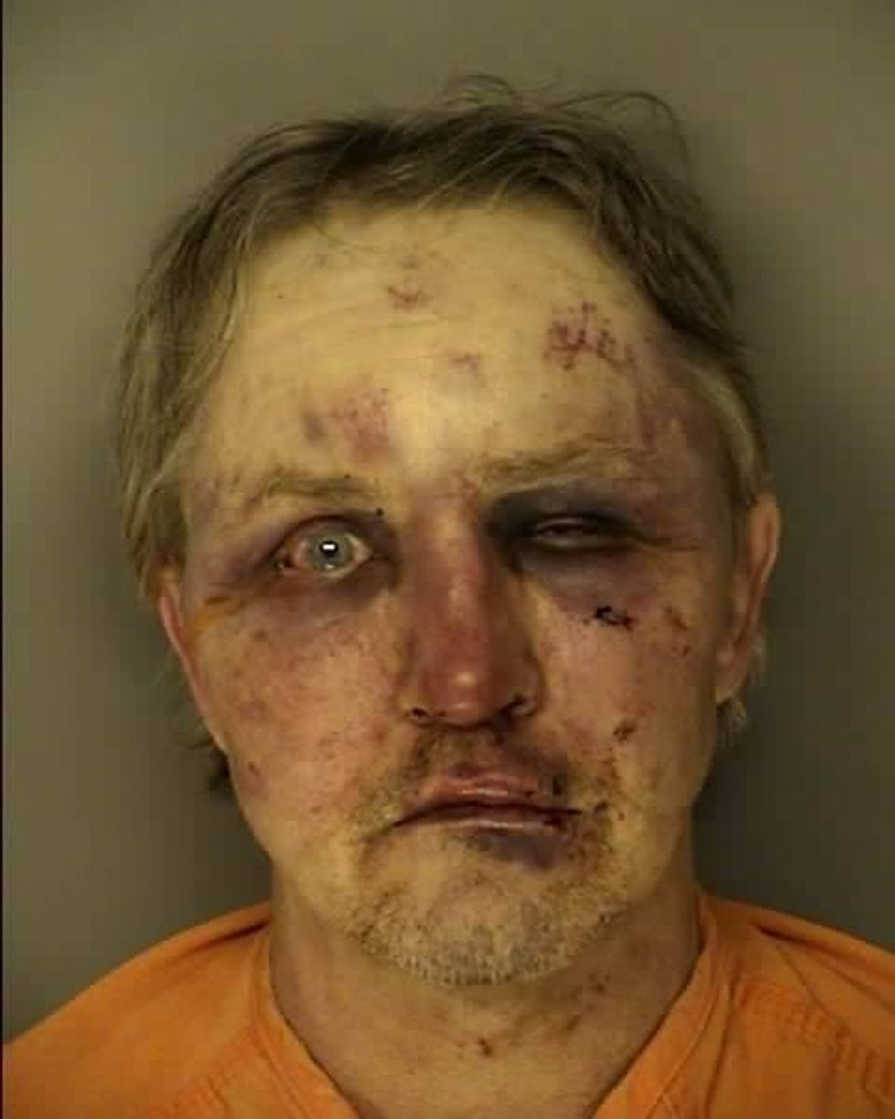 As seen in the suspect’s mugshot, he got more than a few good licks in.
