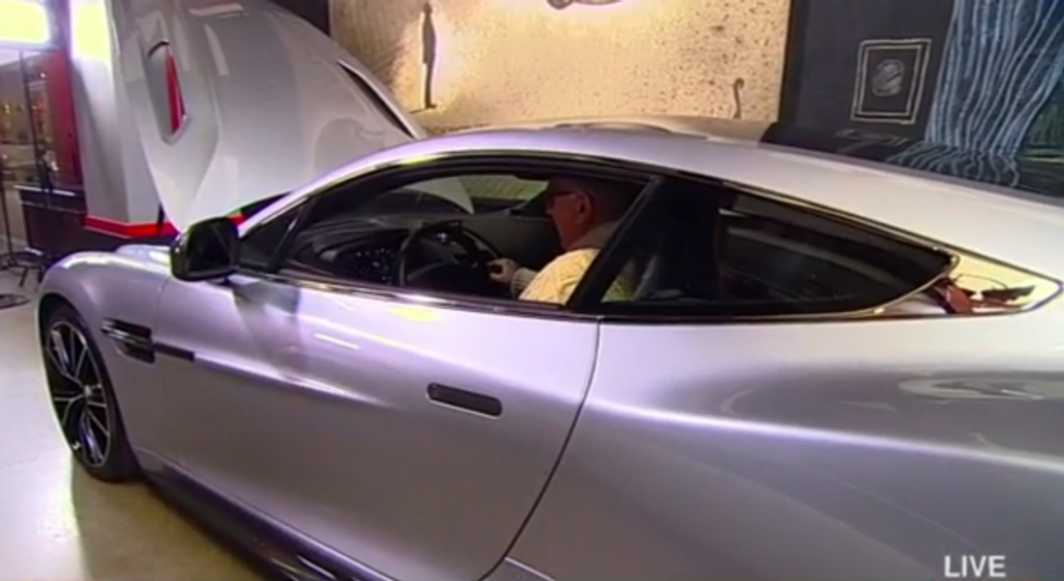 Glenn Beck sits inside an Aston Martin Vanquish as he discusses how the future will change. (Image credit: TheBlaze TV)