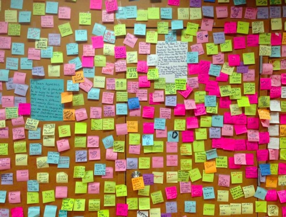 When customers enter Rosa's Fresh Pizza shop in Philadelphia, Pennsylvania, they can't miss the hundreds of Post-It notes and letters plastered all over the walls — evidence of customers' good deeds.