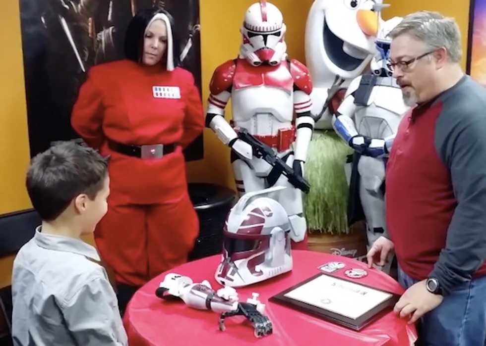 It ended with the Augusta, Georgia, boy being surprised by group of "Star Wars" stormtroopers who presented the young science fiction fan with a very special gift: a 3-D-printed prosthetic arm.