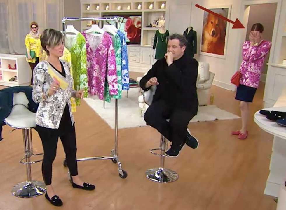 The extended blooper was sparked as Killinger, the host, was looking for the proper words to describe a Mizrahi creation currently on sale.